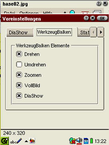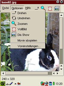 Sie können die Images drehen, umdrehen und zoomen durch Aufruf der entsprechenden Befehle im Menü "Optionen" oder durch Tippen auf den Button im WerkzeugBalken.
