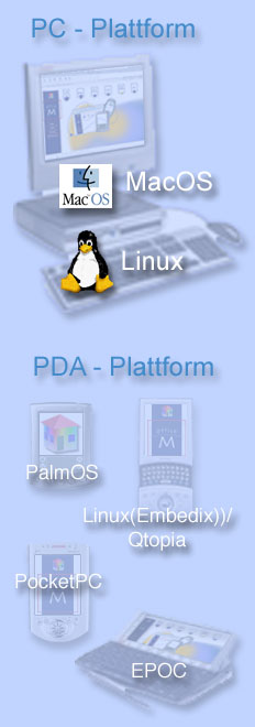 Plattformen: MacOS, Linux, PalmOS, Linux (Embedix) / Qtopia, PocketPC, EPOC