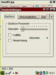 Im "Voreinstellungen..."-Menü können Sie DiaShow-Parameter einstellen.